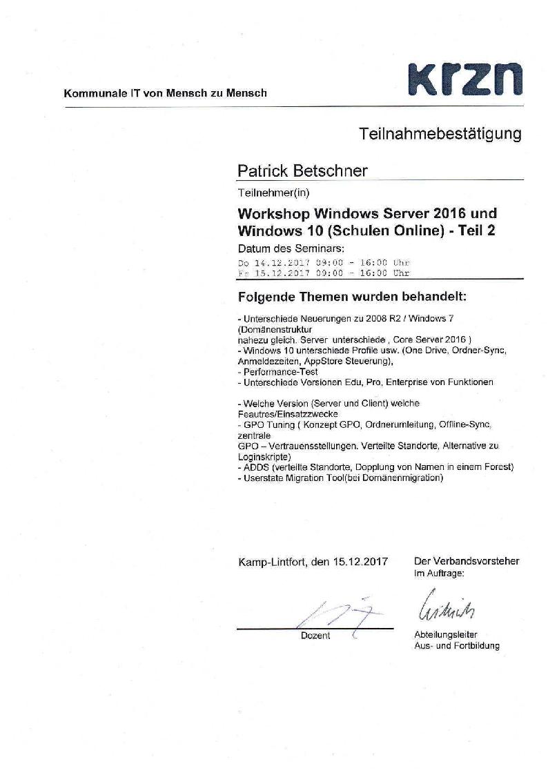 Workshop MS Server 2016 / Windows 10 (2/2)